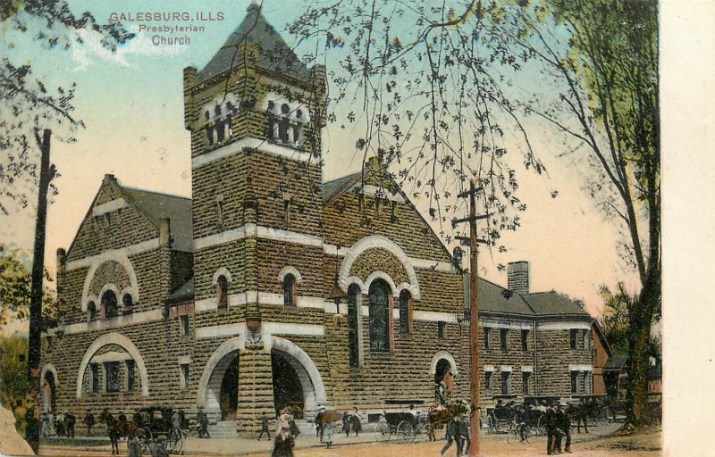 Vintage Postcard Galesburg IL Presbyterian Church Corner View PCK Germany