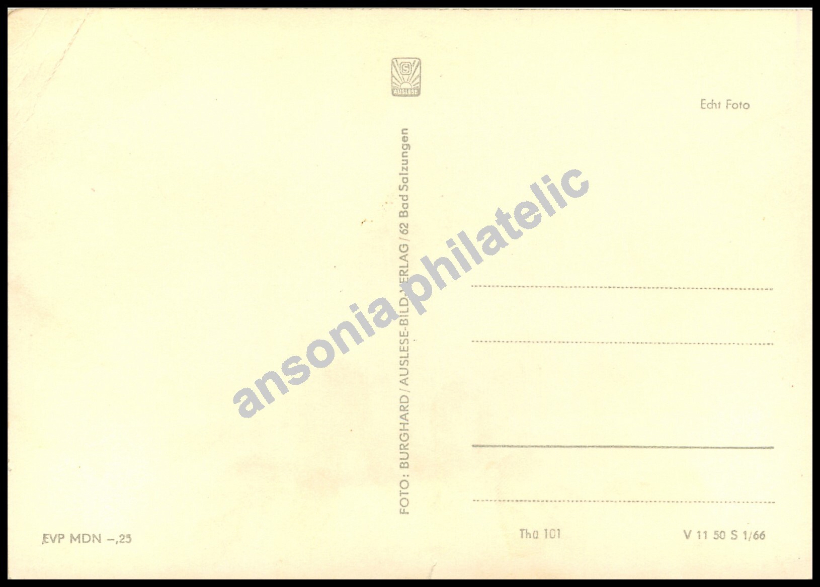 Some scans of postcards result in colored streaks which are a result of the error in scanning and not a fault of the postcard.