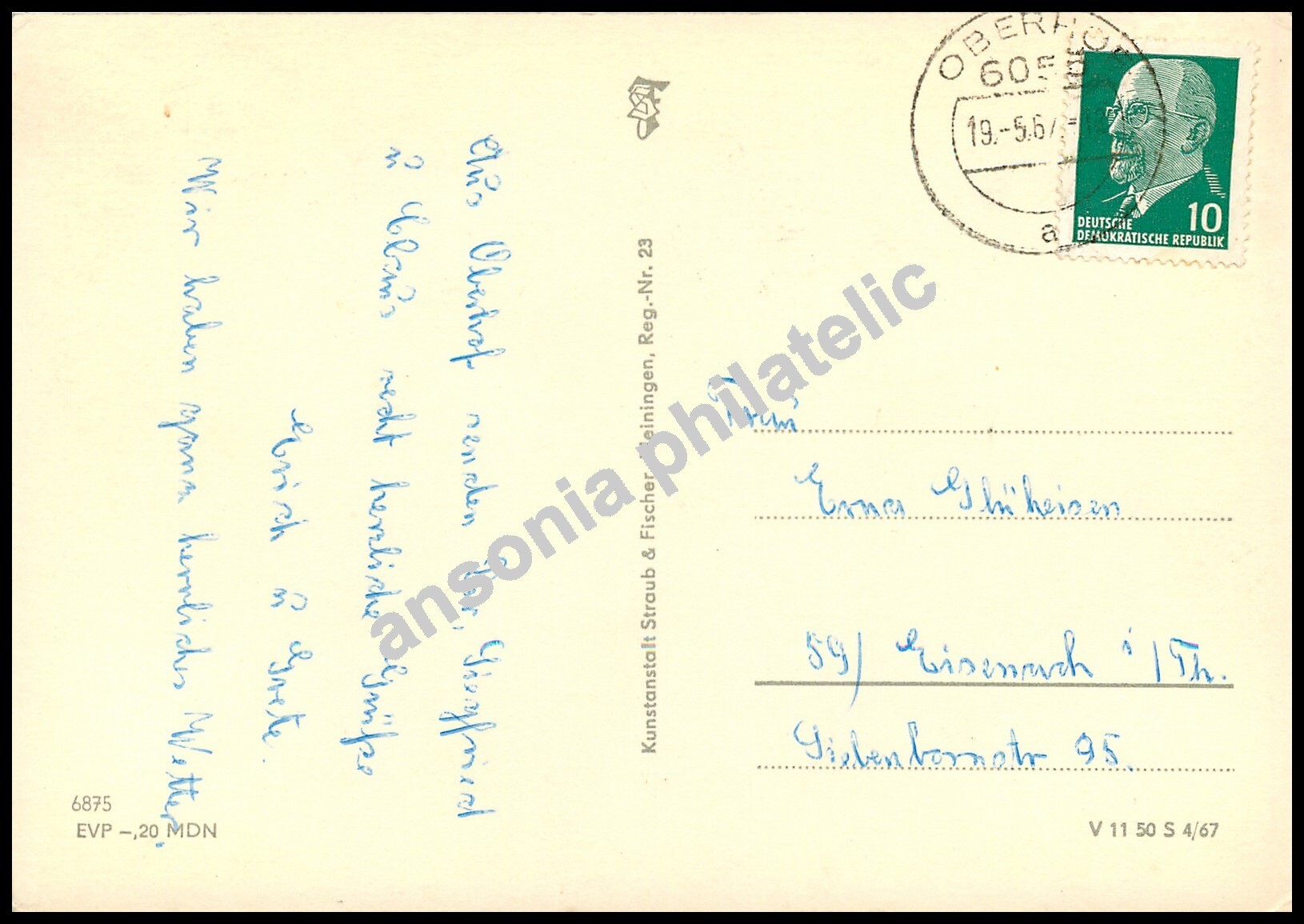 Some scans of postcards result in colored streaks which are a result of the error in scanning and not a fault of the postcard.