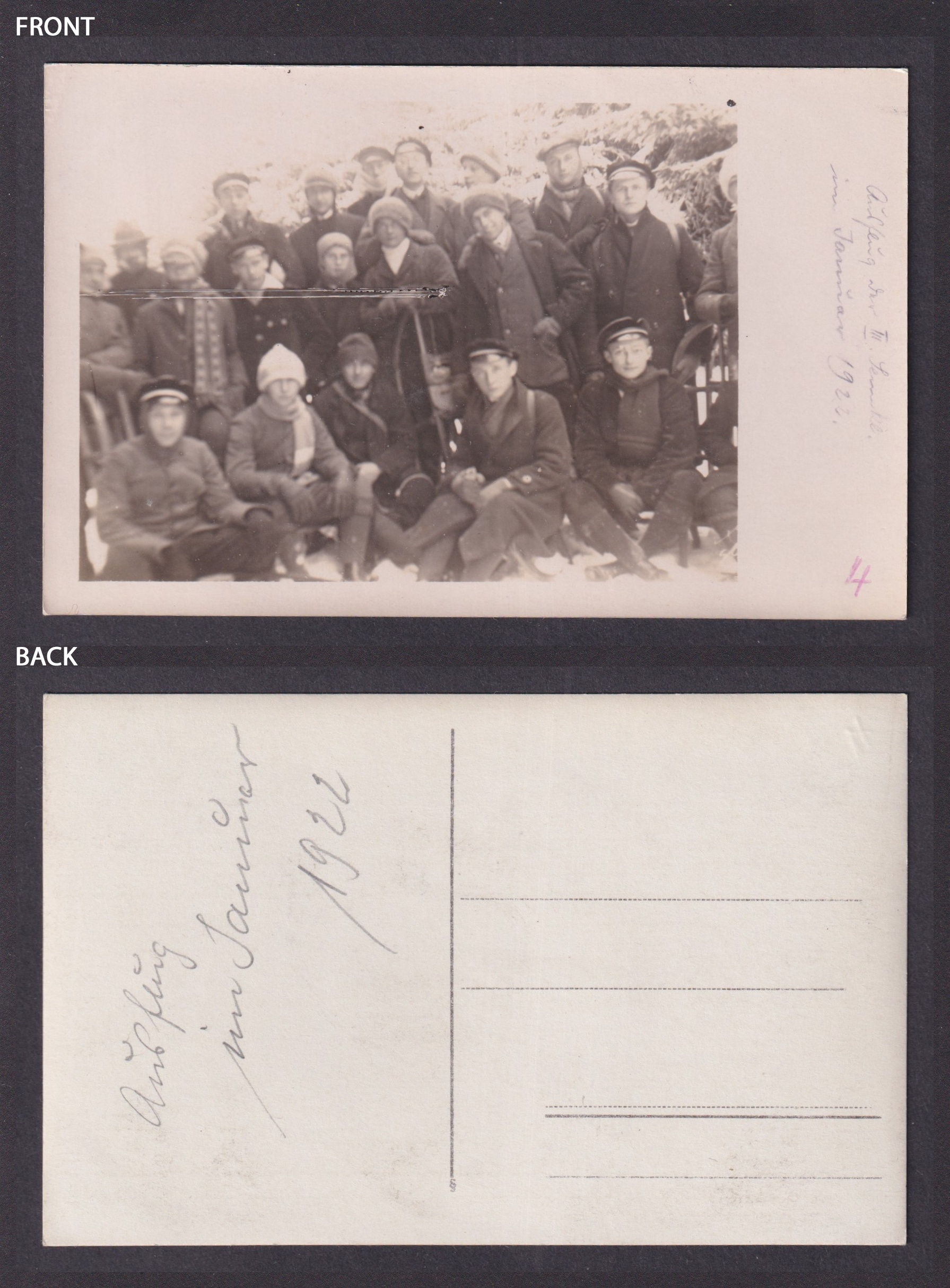 Vintage postcard GERMANY RPPC Students outside winter 1922Please, look at the pictures!