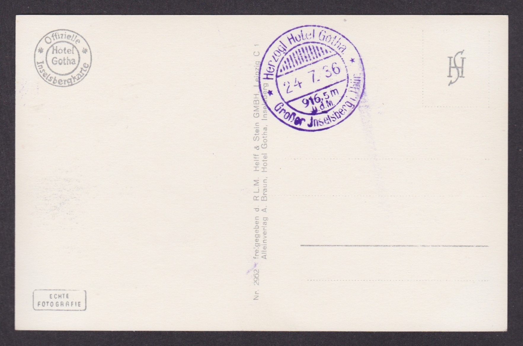 Vintage postcard Germany Thuringia Grosser Inselsberg Hotel Gotha Please, look at the pictures!