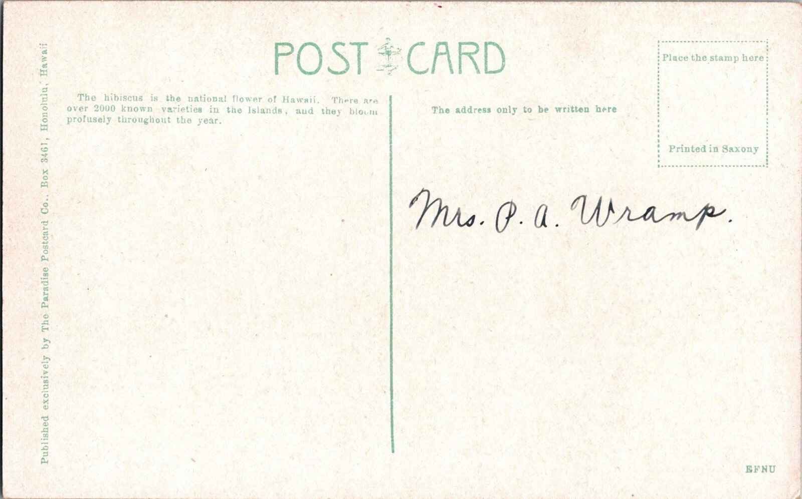Vintage Postcard Hibiscus Flower Hawaii JF3