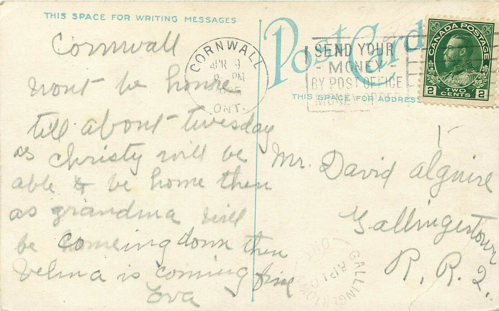 Vintage Postcard; High School, Cornwall Ontario Canada, Posted