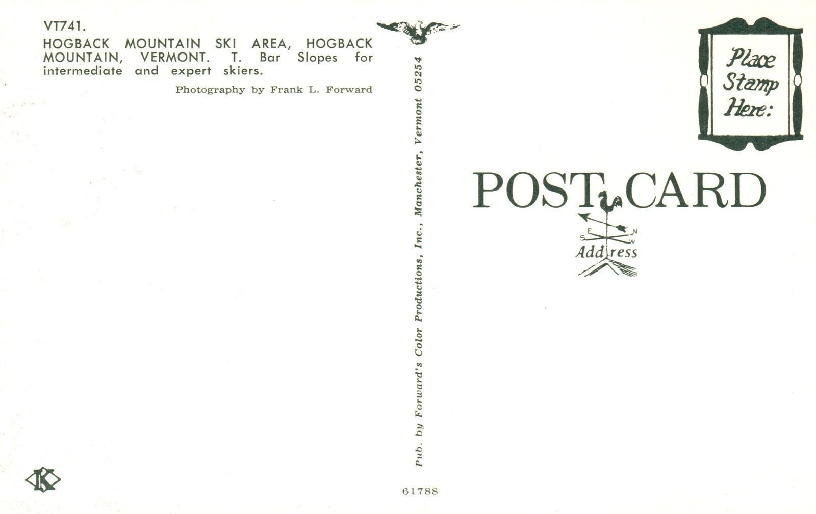 Vintage Postcard Hogback Mountain Ski Area T. Bar Slopes For SKiers Vermont VT