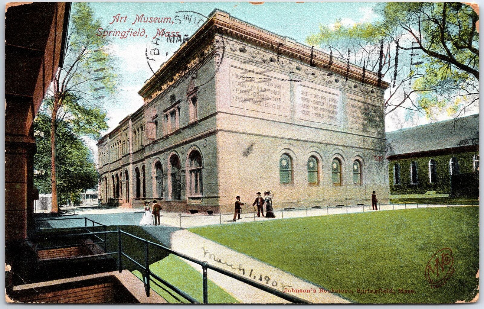 VINTAGE POSTCARD JOHNSON'S BOOKSTORE AT SPRINGFIELD MASSACHUSETTS POSTED 1908