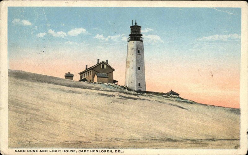 Vintage Postcard Lighthouse Cape Henlopen Delaware DE 1918 Cancel PC