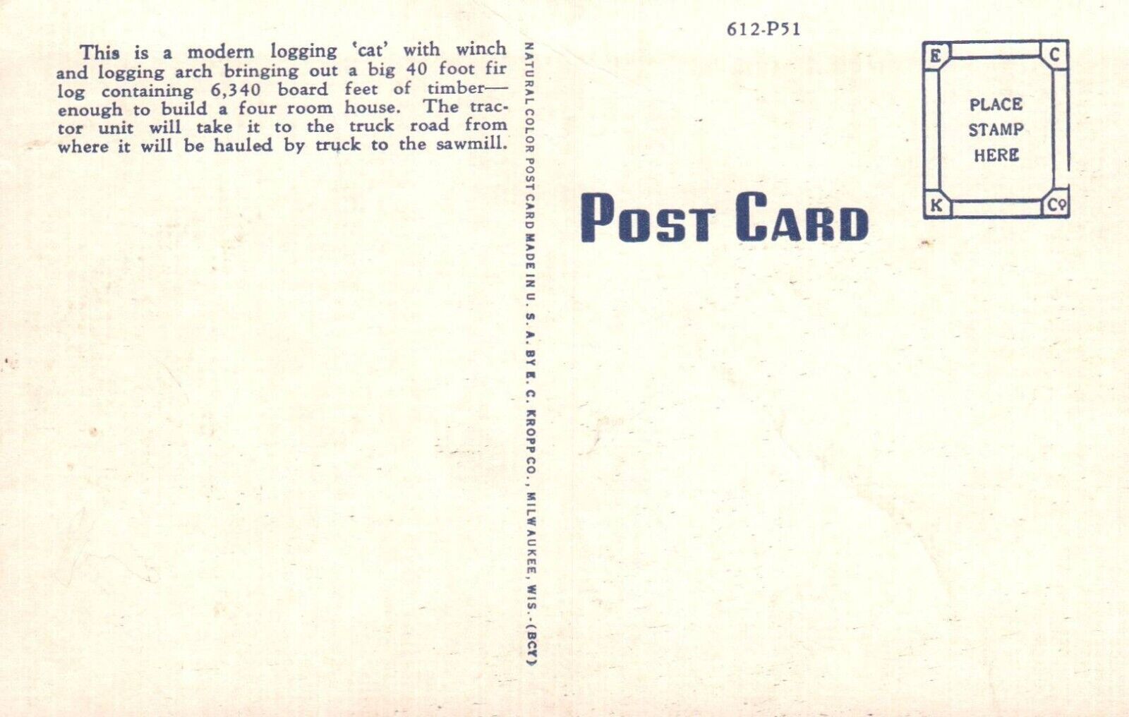 Vintage Postcard Modern Hyster Logging Tractor Forestry