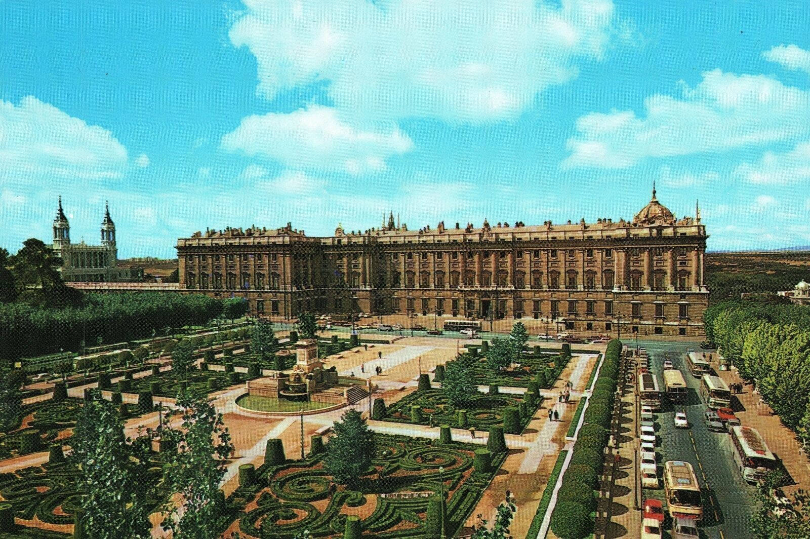 VINTAGE POSTCARD ORIENTAL PLAZA & ROYAL PALACE MADRID SPAIN CONTINENTAL