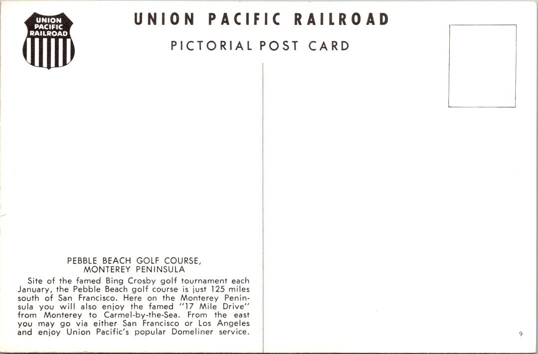 Vintage Postcard PEBBLE BEACH GOLF COURSE, MONTEREY PENINSULA JO8