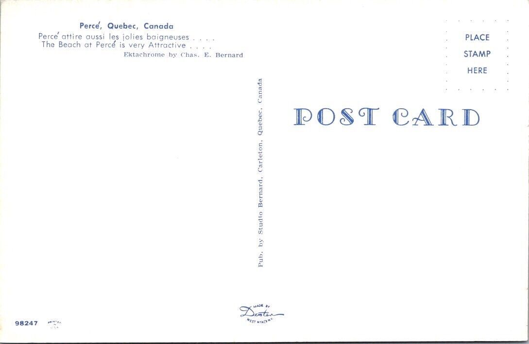Vintage Postcard Perce, Quebec, Canada Bathing Beauty JT13