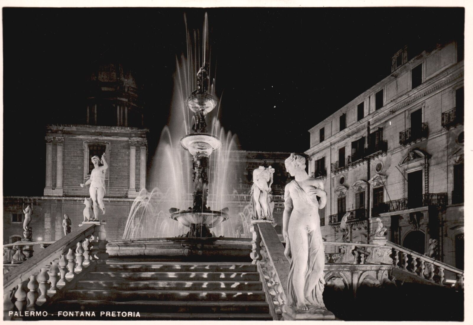 Vintage Postcard Real Photo Palermo Fontana Pretoria Fountain Palermo Italy
