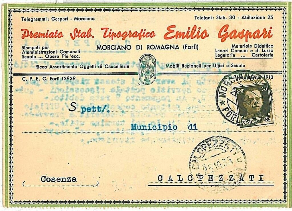Comune: Morciano di Romagna Provincia: Rimini Viaggiata: 1935, angolo inferiore destro piegato - formato grande ___________________________________________________________ Spese di spedizione: NOTA BENE: tutti gli acquisti che superano i 40 euro verrano spediti esclusivamente tramite posta raccomandata, senza eccezzione. Italia - € 5,00 raccomandata; €2 Prioritaria Europe - €6,00 Registered; €3 Regular Rest of the World - € 7,00 Registered Metodi di Pagamento Carta Di Credito Bonifico Bancario e Postale Paypal Contrassegno (solo per l'Italia) SODDISFATI o RIMBORSATI! Stamps.etc garantisce tutte le sue vendite. In caso di non conformità del vostro aquisto con la nostra descrizione, sarà nostra premura rimborsarvi o cambiarlo, previa restituzione. ----------------------------------------------------------- Creato da Turbo Lister Strumento gratuito per mettere in vendita i tuoi oggetti. Metti in vendita i tuoi oggetti in modo facile e veloce e gestisci le inserzioni in corso. Track Page Views WithAuctiva's FREE Counter