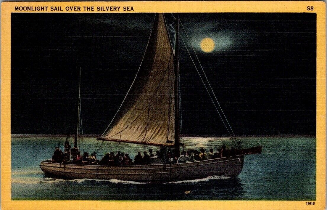 Vintage Postcard Sailboat Moonlight Night JN1