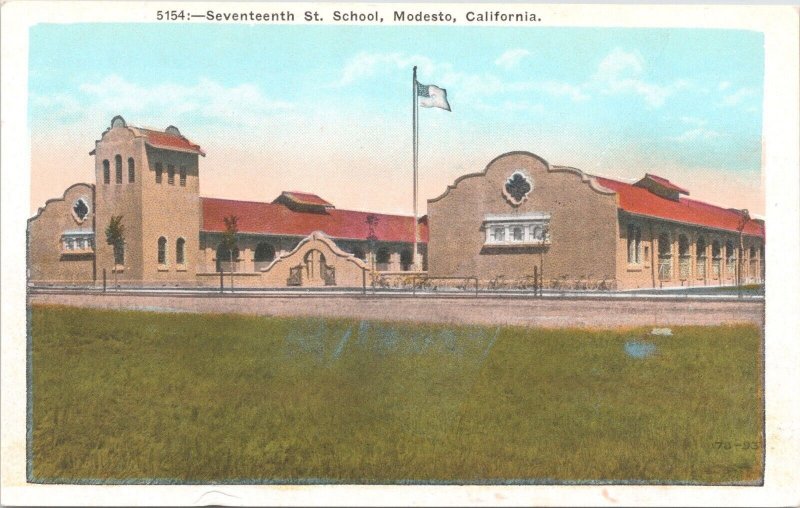 Vintage Postcard - SEVENTEENTH ST SCHOOL - Modesto, California