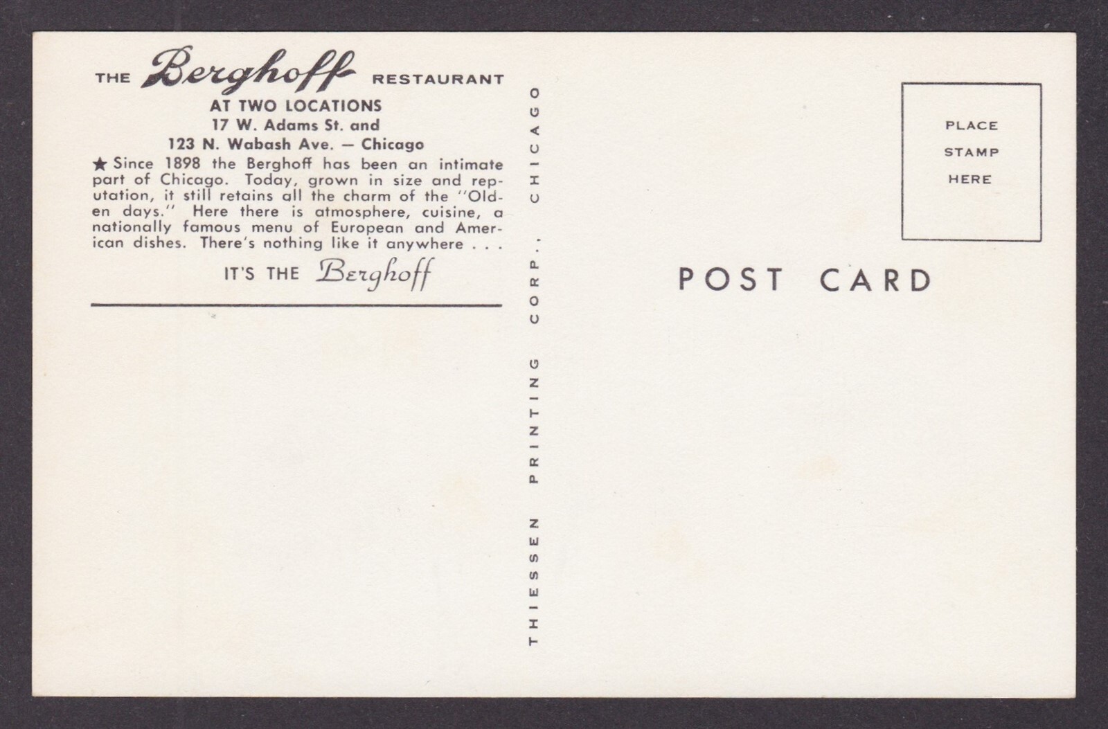 Vintage postcard, The Berghoff Restaurant, Advertising