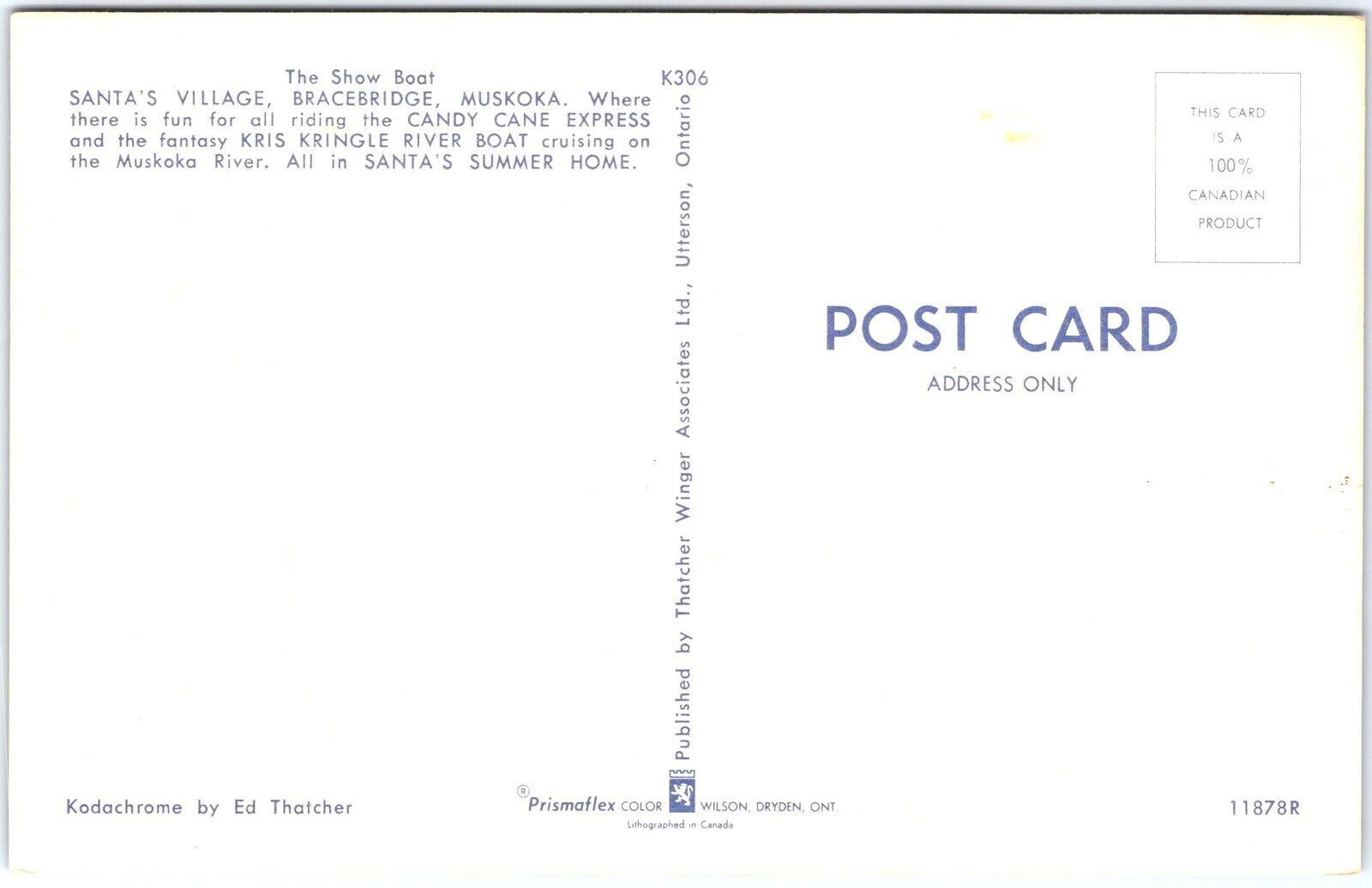 VINTAGE POSTCARD THE SHOW BOAT AT SANTA'S VILLAGE BRACEBRIDGE MUSKOKA CANADA