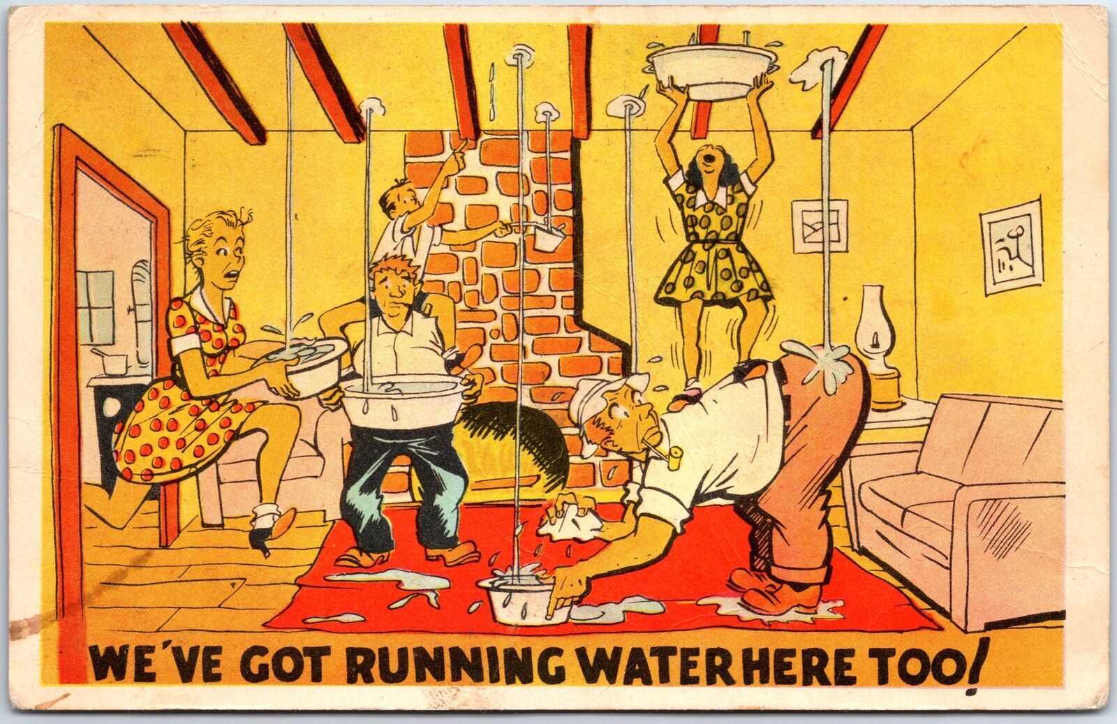 VINTAGE POSTCARD WATER LEAKING FROM MULTIPLE LOCATIONS COMICAL HUMOUR 1951