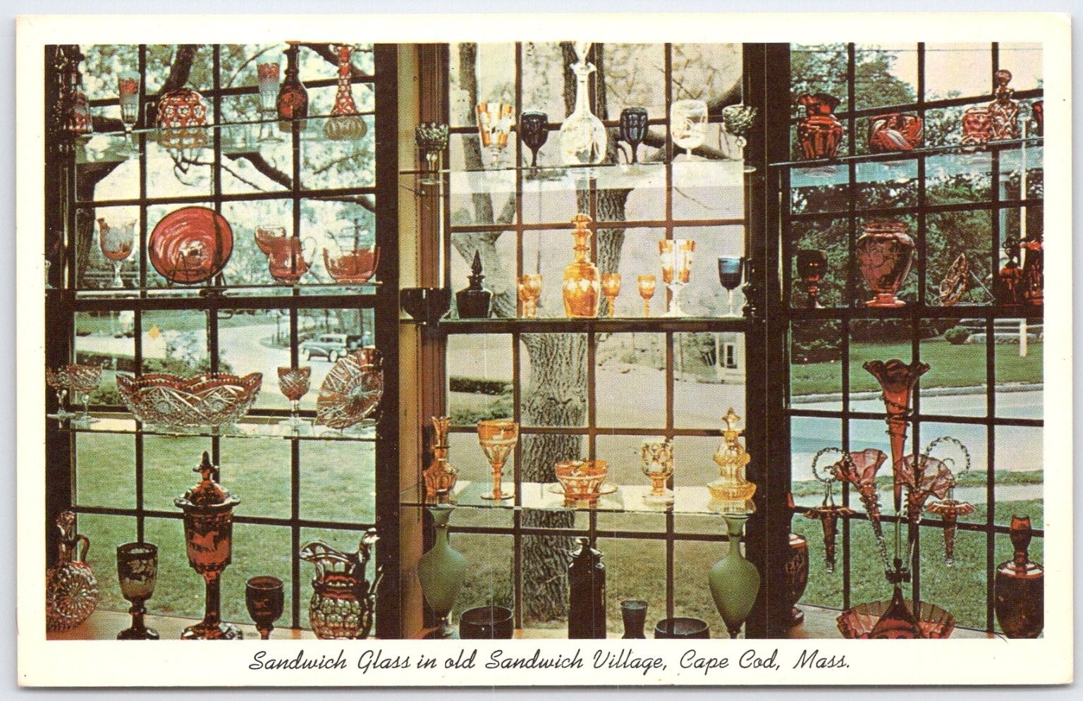 Vintage Sandwich Glass Museum Window Display Postcard Cape Cod MA
