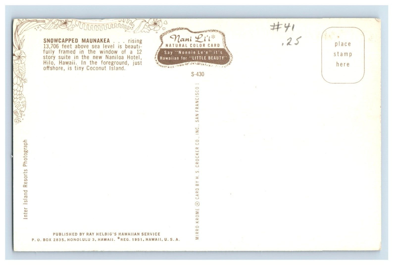 Vintage Snowcapped Maunakea Hilo Hawaii Postcards P166E