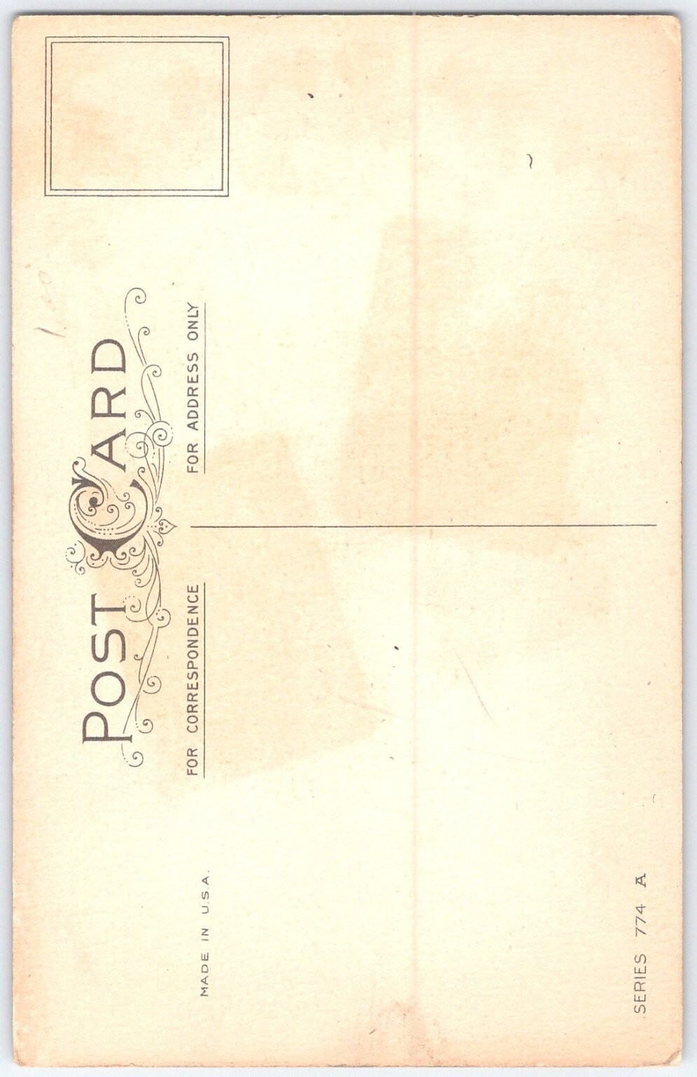 This charming vintage Thanksgiving postcard features an artistic illustration of two turkeys pecking at the ground, accented by vibrant pineapples and a backdrop of wheat sheaves. The design is bordered by a garland of grapevines laden with grapes, adding a classic autumnal touch. The card carries a warm Thanksgiving message in a decorative script, emphasizing kindness and friendship during the holiday.Produced in the USA, this postcard belongs to Series 774 A and measures the standard 5.5 x 3.5 inches. The card is printed on paper with a traditional postcard layout on the reverse, showing spaces for correspondence and address. The publisher's mark appears as a small round emblem with an 'S' in the lower left corner of the front, indicating a collectible piece from an early 20th century series. This collectible Thanksgiving postcard captures the nostalgic spirit of the holiday with its vintage artistry and seasonal symbolism.