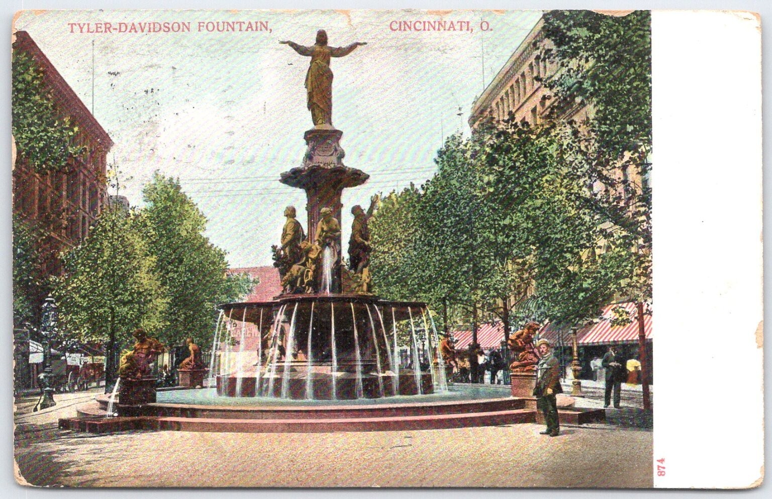 Vintage Tyler-Davidson Fountain Cincinnati Ohio Postcard 1906