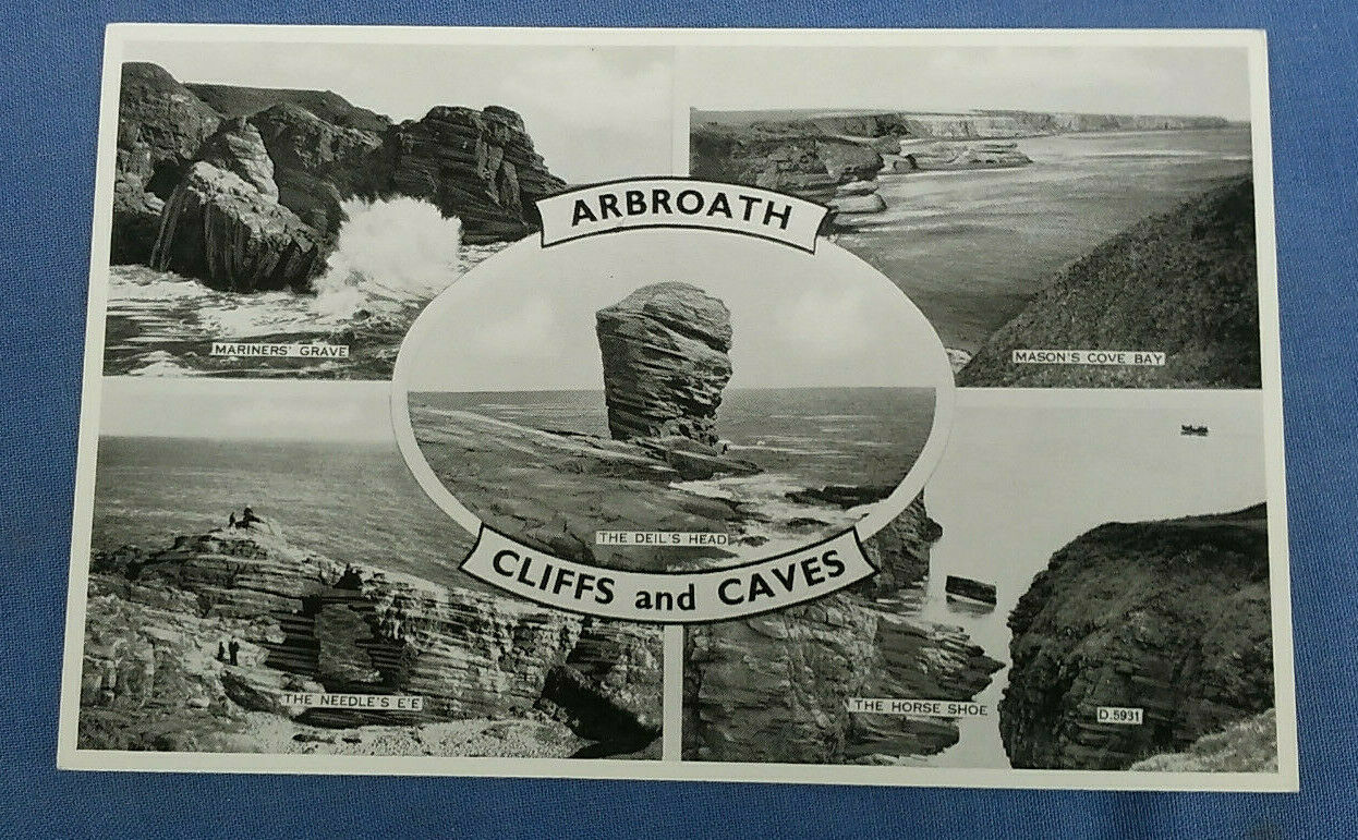 Vintage Valentines "Silveresque" Multiview Postcard Arbroath Cliffs And Caves C1E Good condition, not used postally , corner bumps, see pics