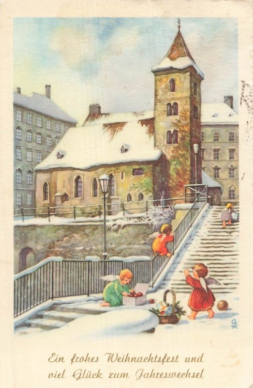 Vintage Vienna Ruprechtskirche Christmas Postcard Angels Snow 1939 Austrian