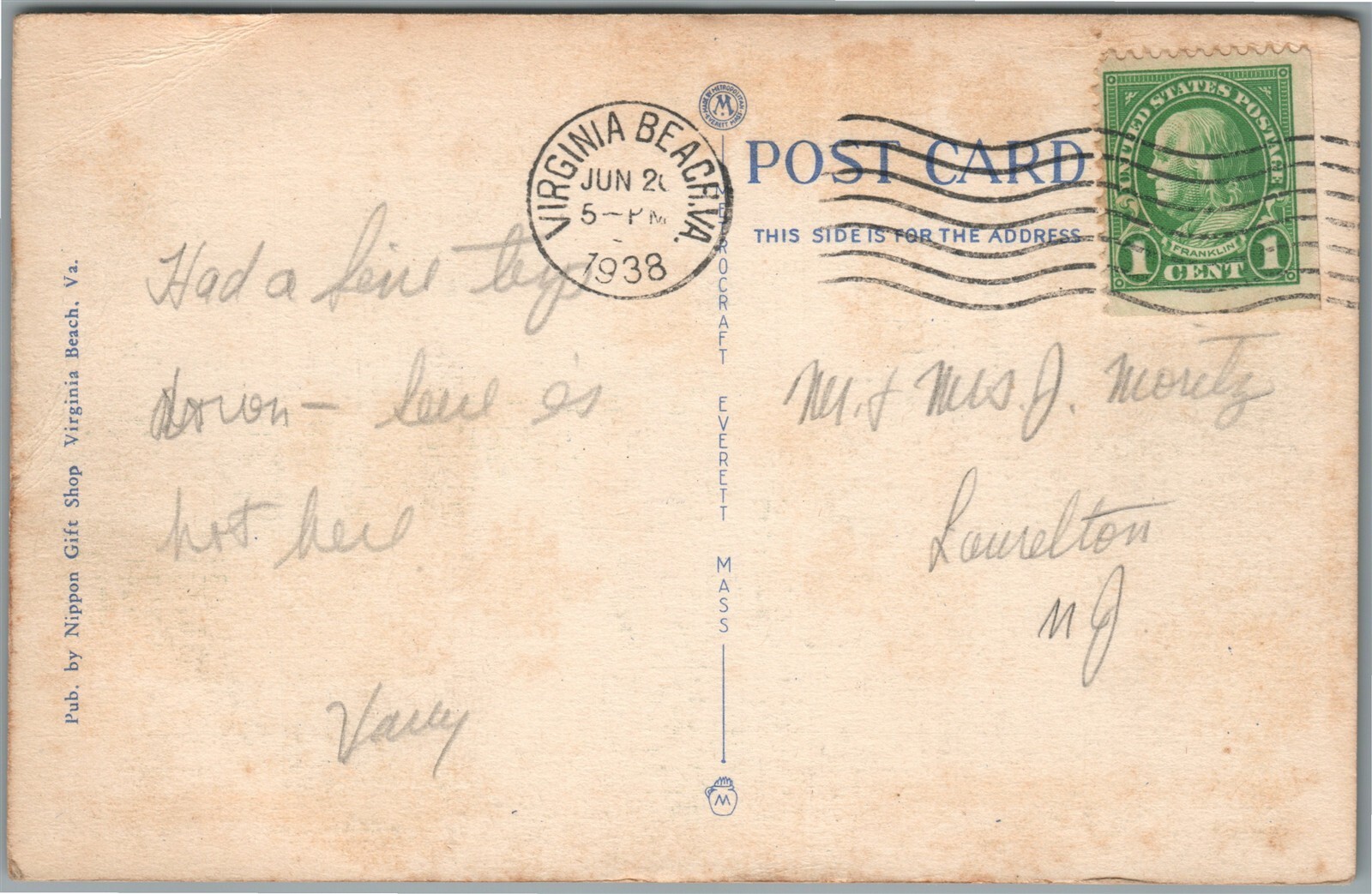 VIRGINIA BEACH VA OCEAN FRONT ANTIQUE POSTCARD