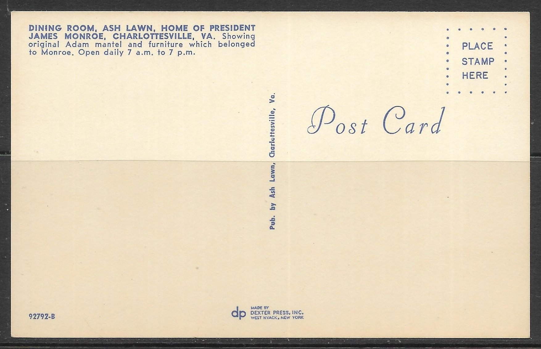 Virginia, Charlottesville - Ash Lawn - Dining Room - [VA-541]