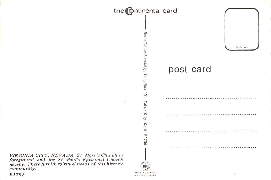 Virginia City - Nevada Grade: 3 Category: Continental Size Postcard, Approx 4 in x 6 in (10 cm x 15.25 cm) Product Size: Continental size: 4X6 inches (10.5 cm x 15 cm) Grading Scale: Grade 1 = Perfect corners G ... Read More