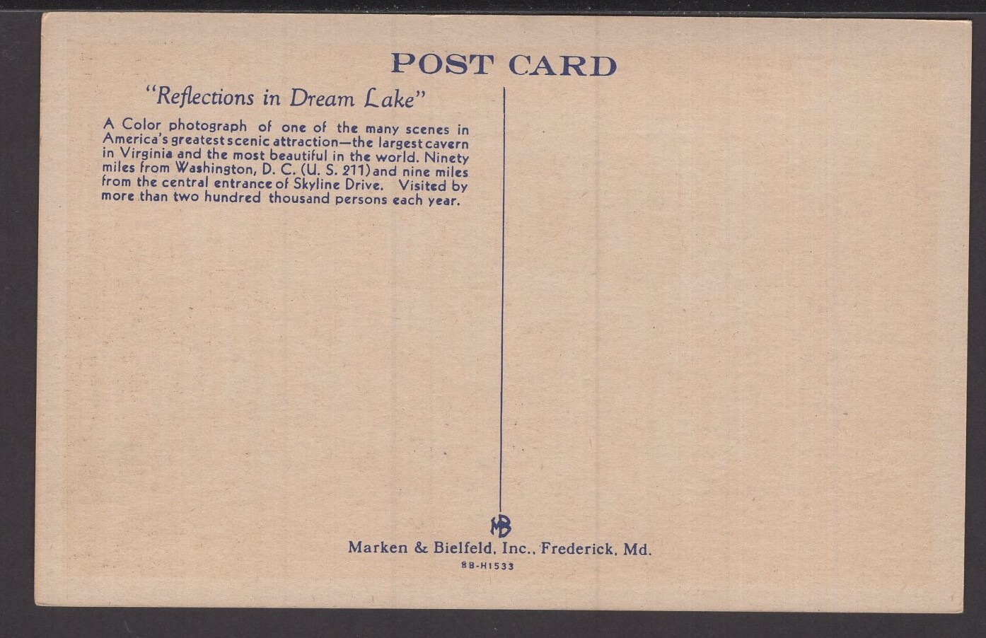 Virginia LURAY CAVERNS "Reflections in Dream Lake" - Linen