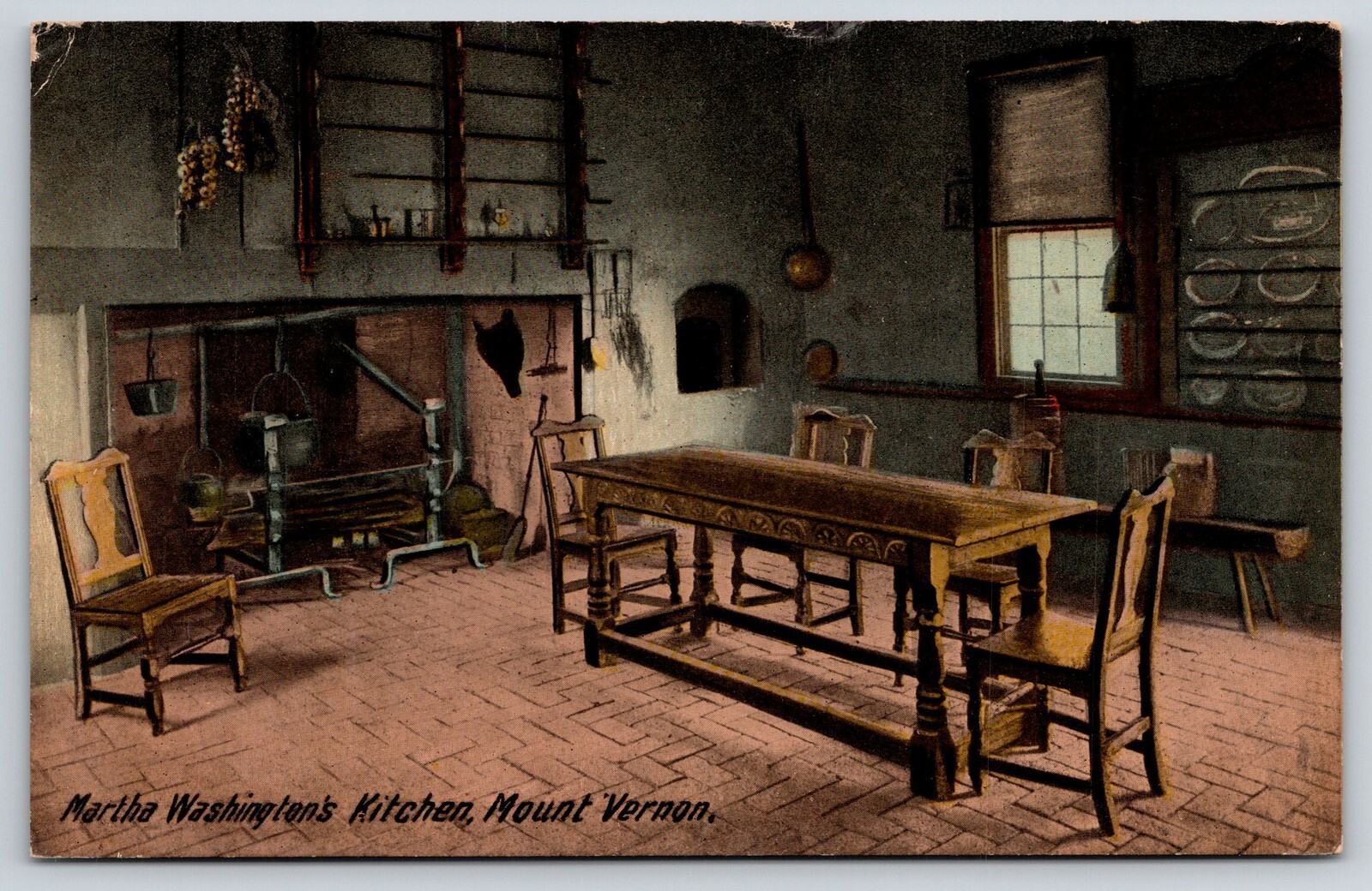Virginia~Mt Vernon Home~Martha Washington Kitchen Interior~Fireplace~c1910 PC