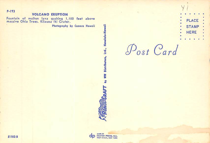 Volcano Eruption , Hawaii Postcard