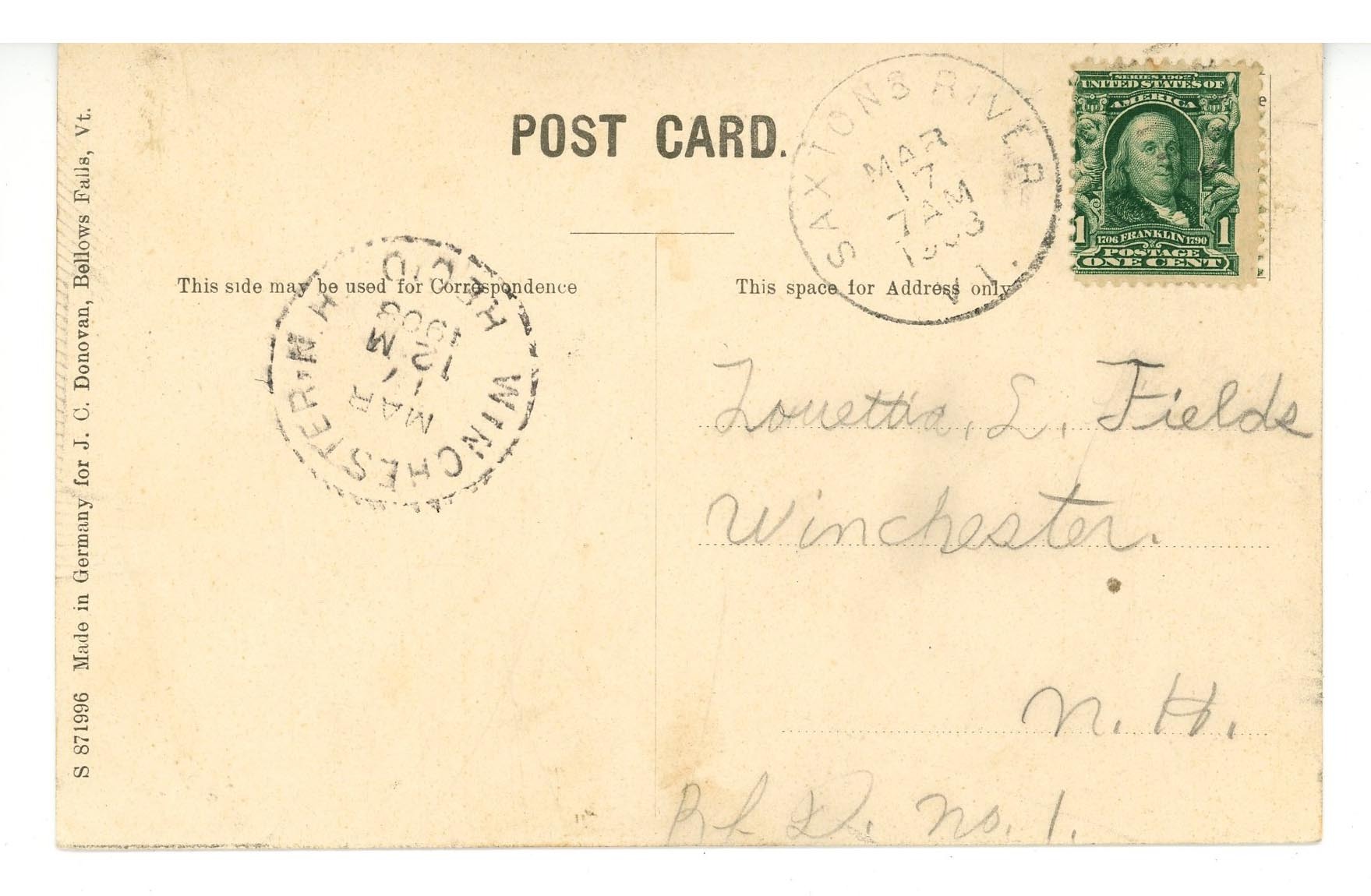 VT - Bellows Falls. Rockingham Street ca 1908