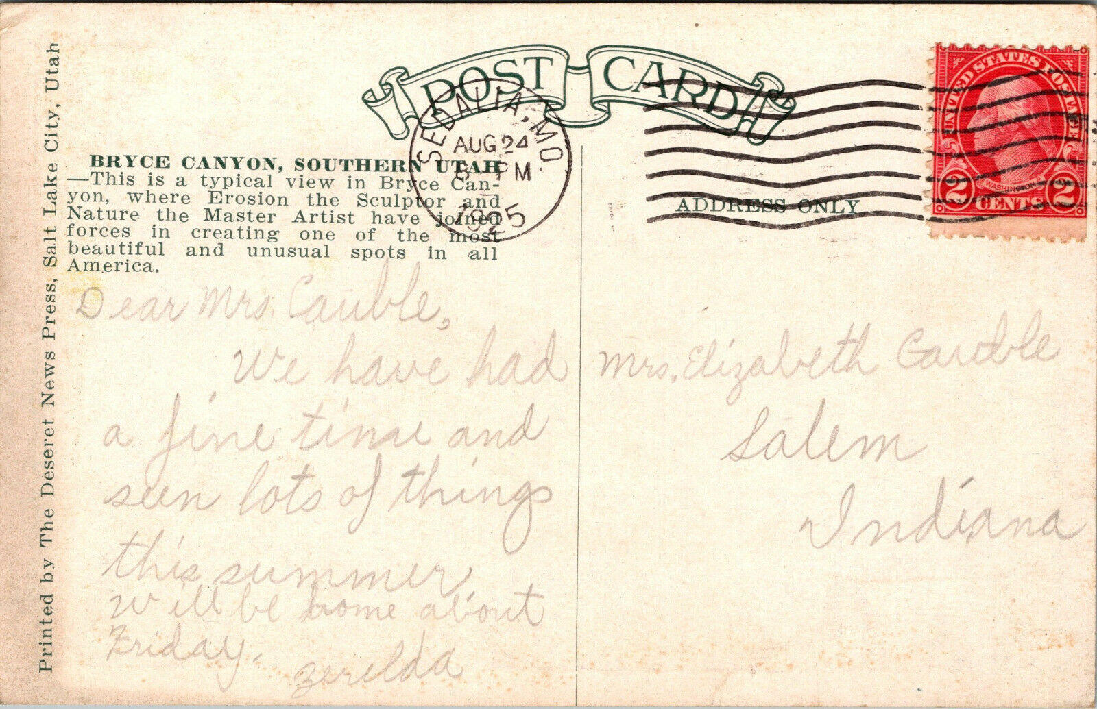 Vtg 1920's Bryce Canyon Southern Utah UT Postcard