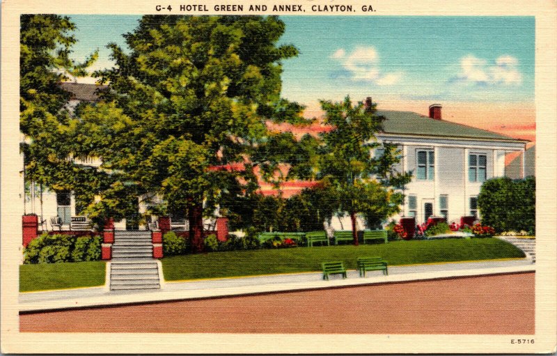 Vtg Clayton Georgia GA Hotel Green and Annex 1930s Unused Linen Postcard