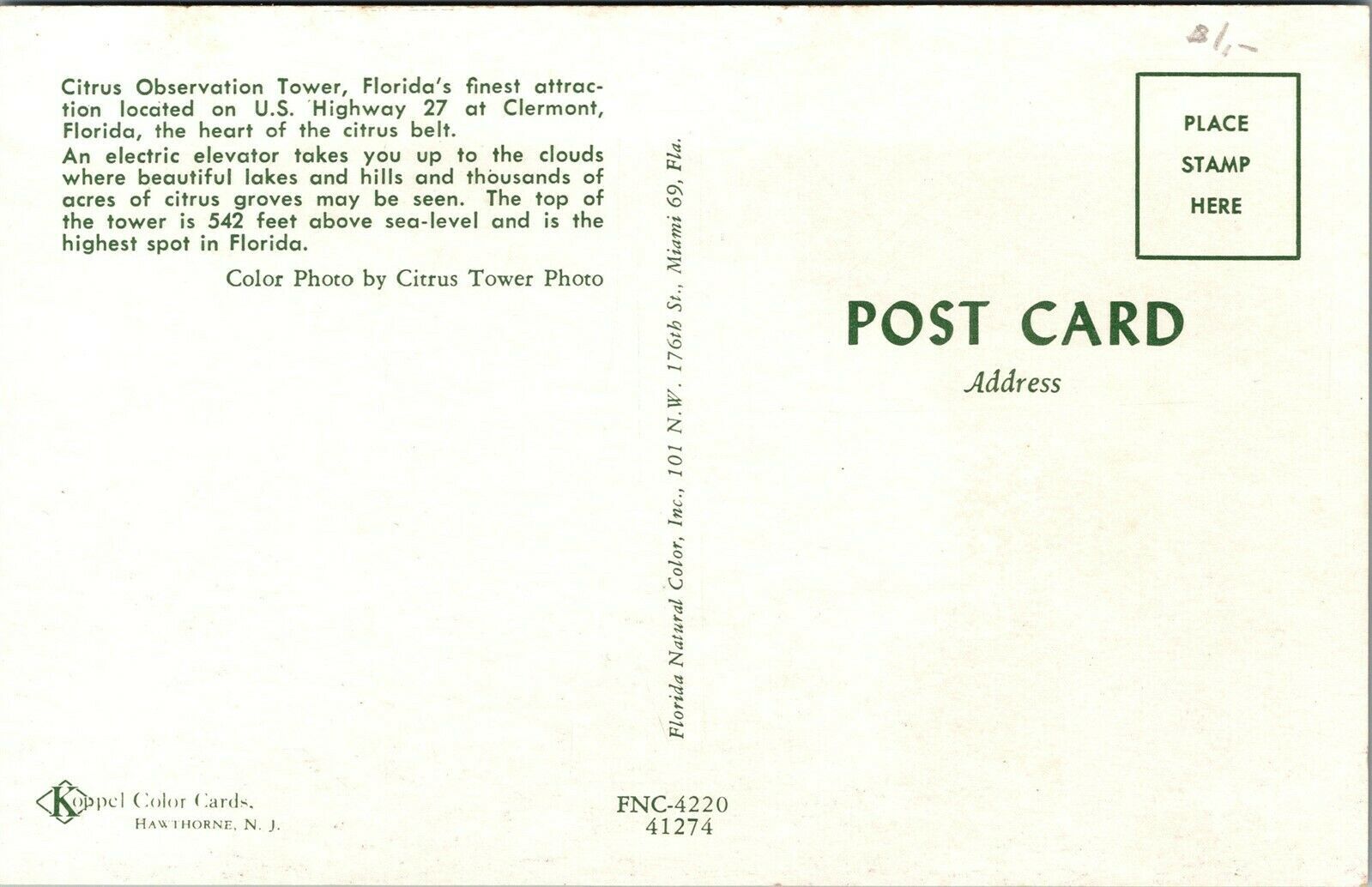 Vtg Clermont Florida FL Citrus Observation Tower 1950s Postcard