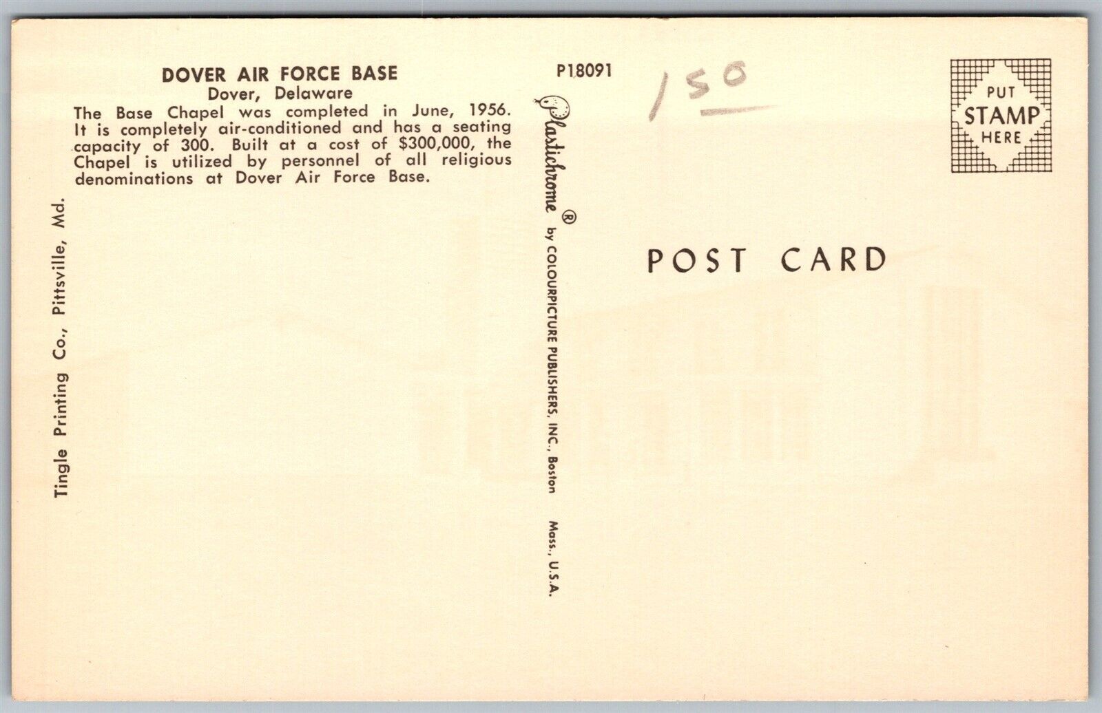 Vtg Delaware DE Chapel Dover Air Force Base 1950s View Chrome Postcard