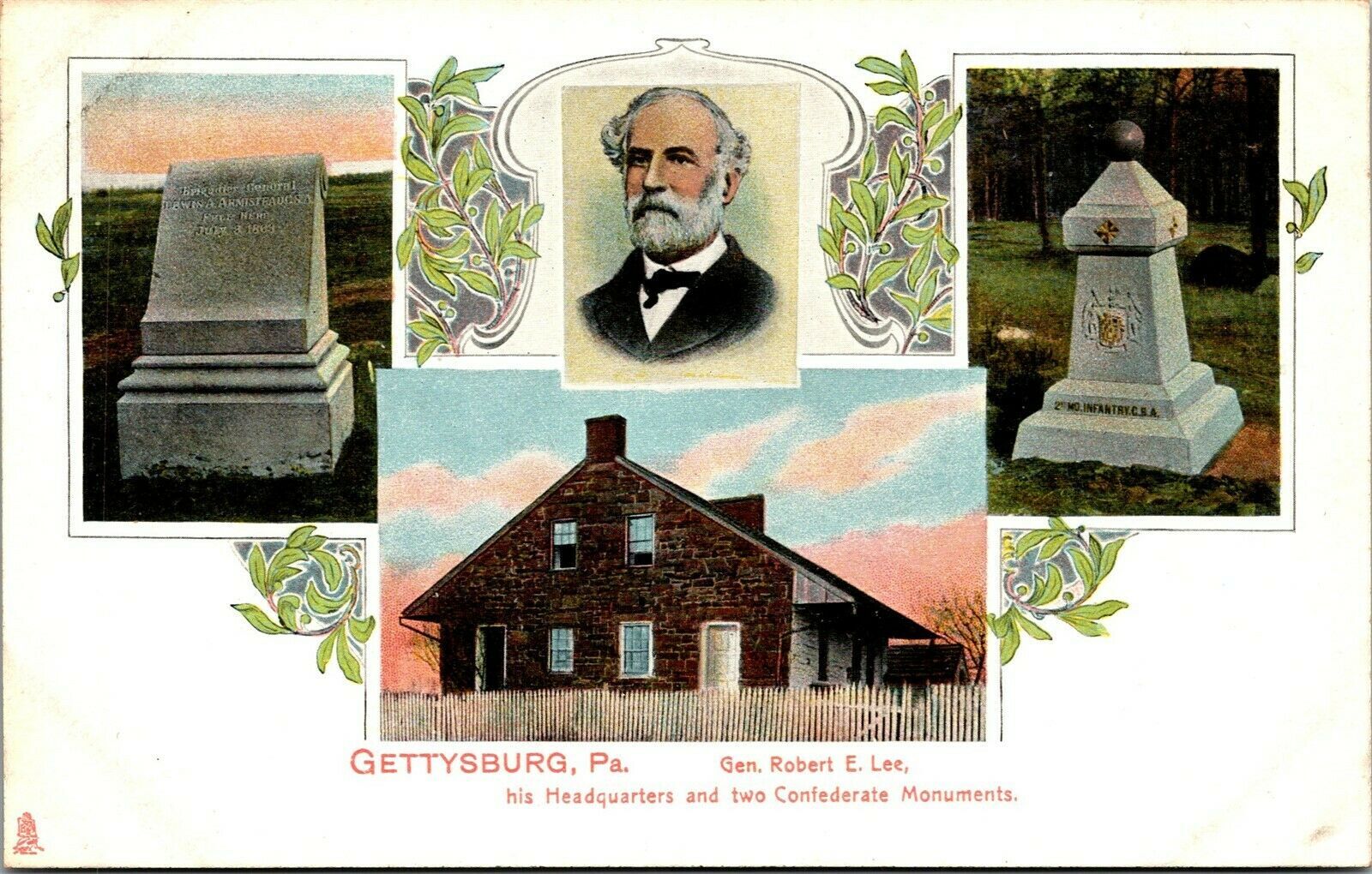 Vtg Gettysburg PA Robert E Lee Headquarters & Confederate Monuments Postcard