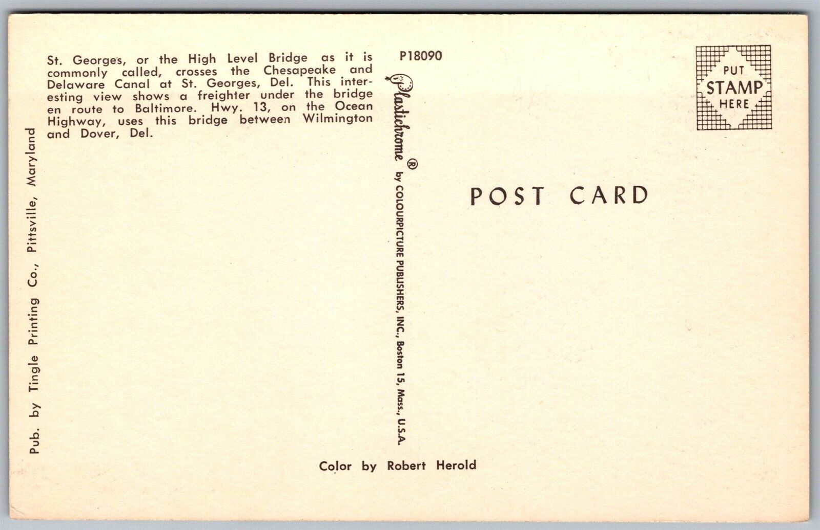Vtg St Georges Delaware DE High Level Bridge Freight Cargo Ship 1950s Postcard