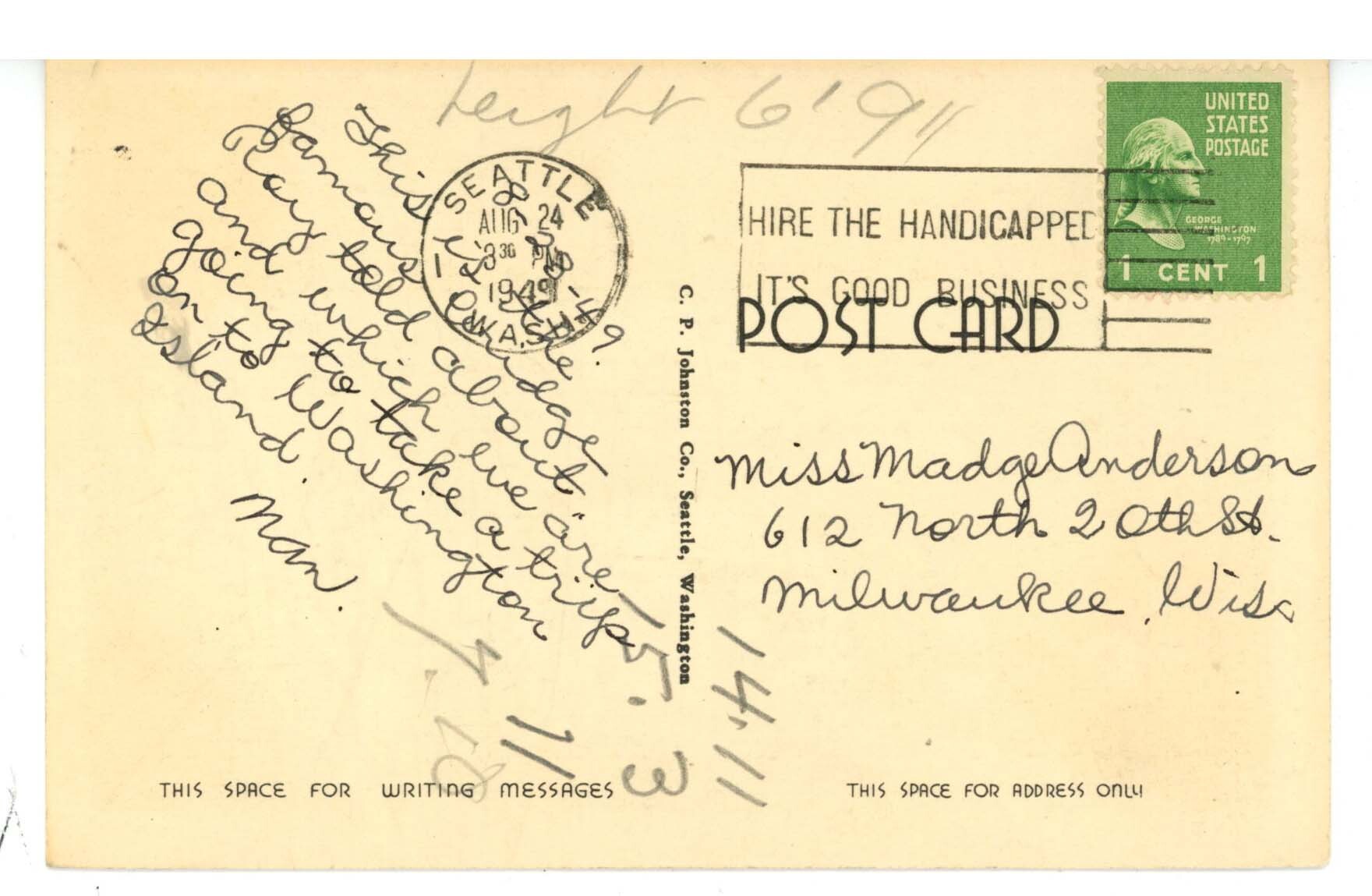 Please use the Hip Photo Magnifier (the zoom feature) to examine all images for condition and details before purchasing. Postcards, Folders, Ephemera are all sold with sleeves. Message us if you have specific questions about an item. Attic Heritage Auctions (AHA) generally ships orders within 24 to 48 hours of receipt. Shipping delays with the U. S. Postal Service are common. Unfortunately, we have no control once your order is shipped. In some areas shipping times have resulted in orders being delivered as much as several weeks after mailing. Please be assured that we at Attic Heritage Auctions (AHA) are still shipping every order expediently and shall continue to do so.Seller Information