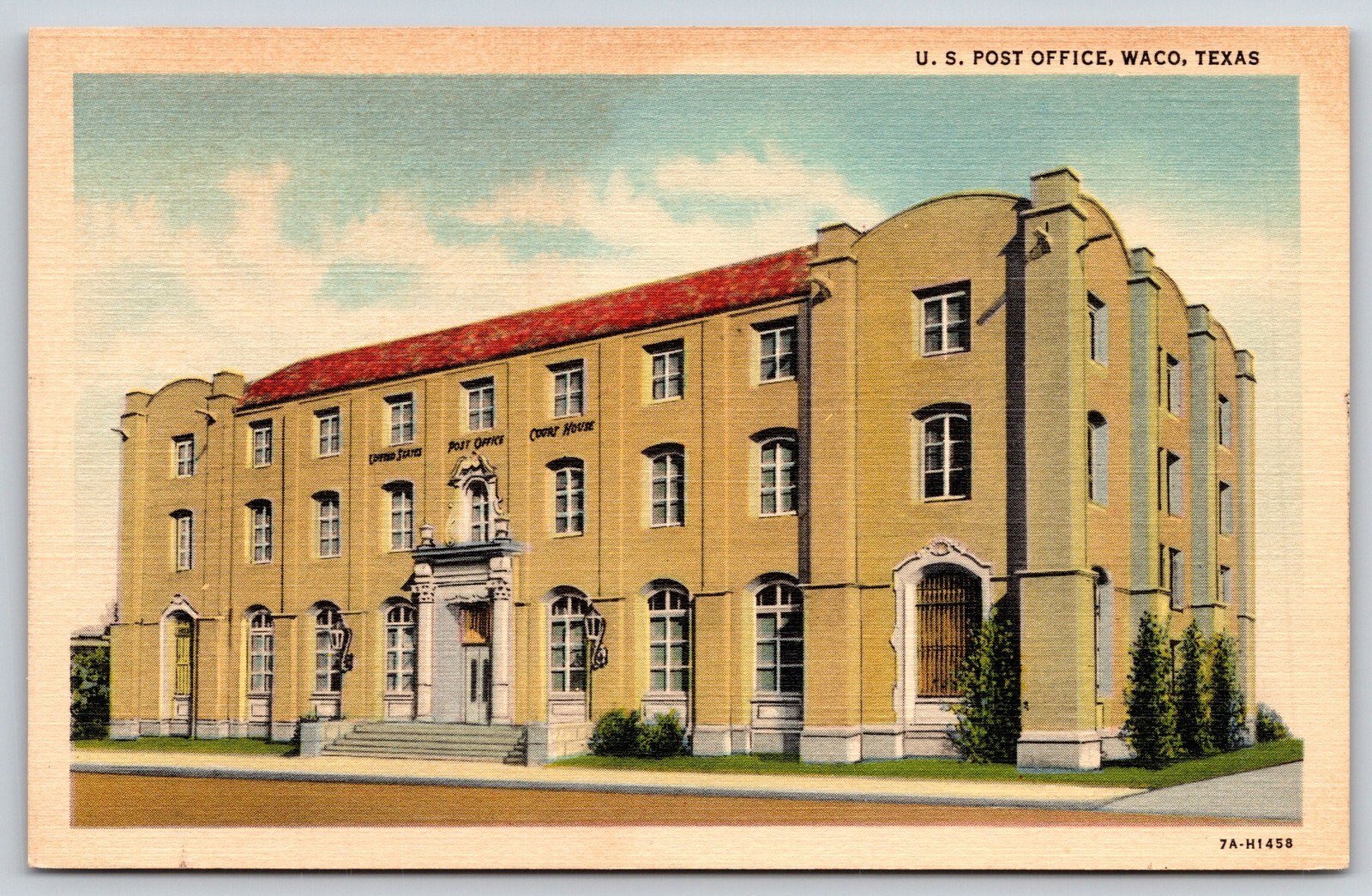Waco Texas~US Post Office Courthouse Bldg St View~Beaux-Arts~Linen 1940s PC