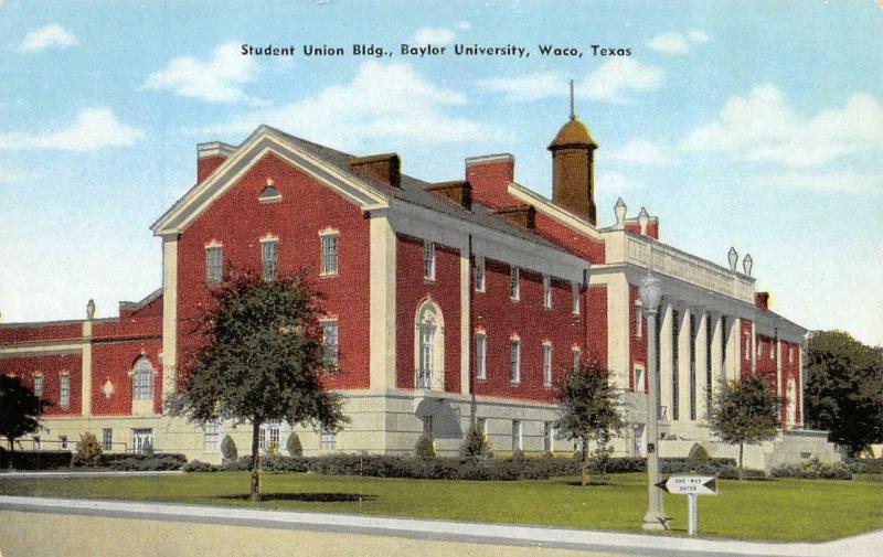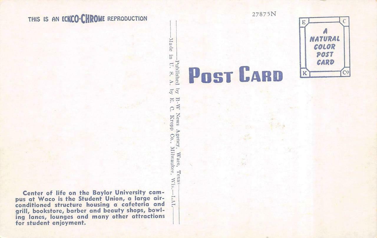 Waco, tx texas student union building~baylor university chrome postcard