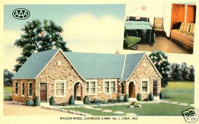 Wagon Wheel Luxurious Cabin #! Cuba MO Postcard