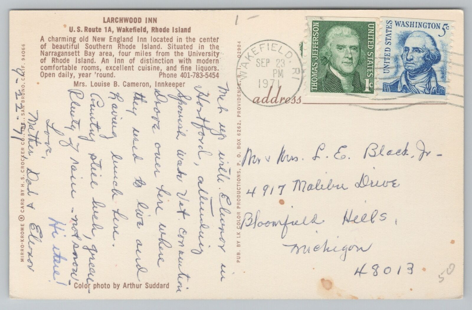 Wakefield Rhode Island~Larchwood Inn~Vintage Postcard