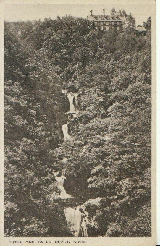 Postcard Description: Wales Postcard - Hotel and Falls - Devils Bridge - Cardiganshire