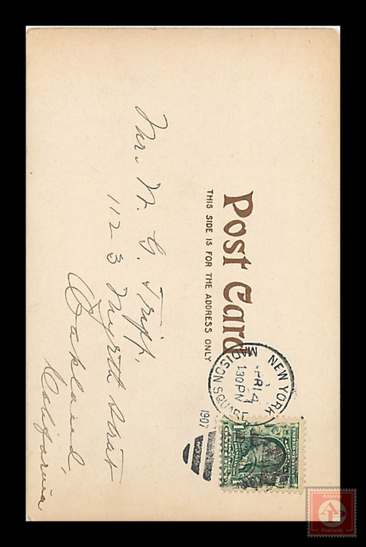Some scans of postcards result in colored streaks which are a result of the error in scanning and not a fault of the postcard.
