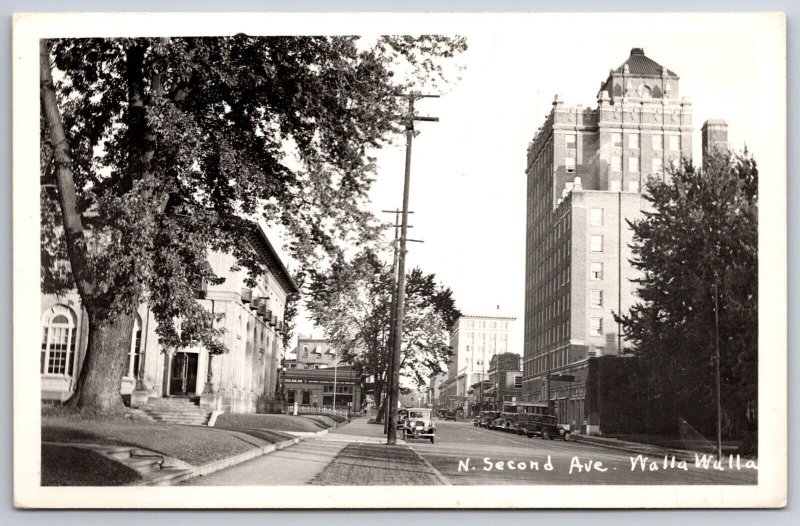 Walla Walla~Big Tree by Post Office~N Second Ave~Marcus Whitman Hotel~RPPC 1940s