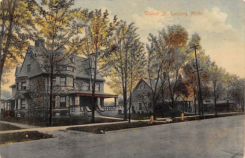 Walnut Street View - Lansing, Michigan MI Postcard - View back side image