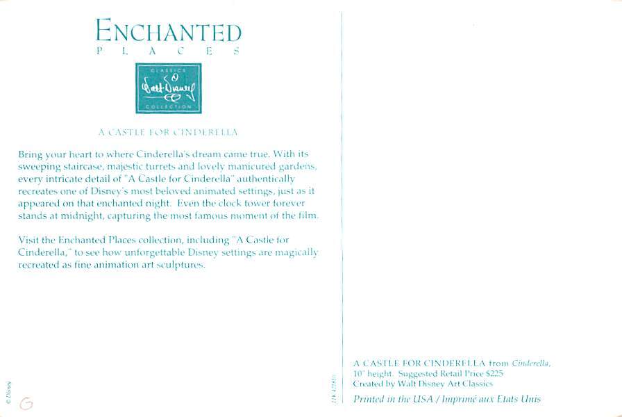 Walt Disney Castle for Cinderealla Grade: 1 Size: Continental Size - approximatly 4 Inch x 6 Inch (15 cm x 10.5) Grading Scale: Grade 1 = Perfect corners Grade 2 = Very Minimal corner wear, no creases Grade 3 ... Read More